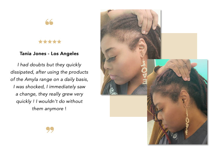 Amyla Cosmetics hat eine Produktreihe speziell für schwarzes Haar entwickelt. Tausende Frauen auf der ganzen Welt verwenden täglich Produkte von Amyla Cosmetics, um dünnes, langes Haar zu bekommen.