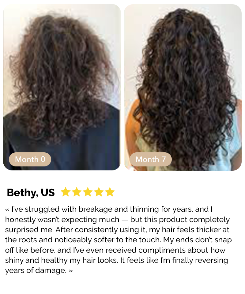 1. Bereits in den ersten Wochen ist Ihr Haar weniger brüchig , Ihre Kopfhaut besser mit Feuchtigkeit versorgt und Ihre Haarwurzeln sind kräftiger.