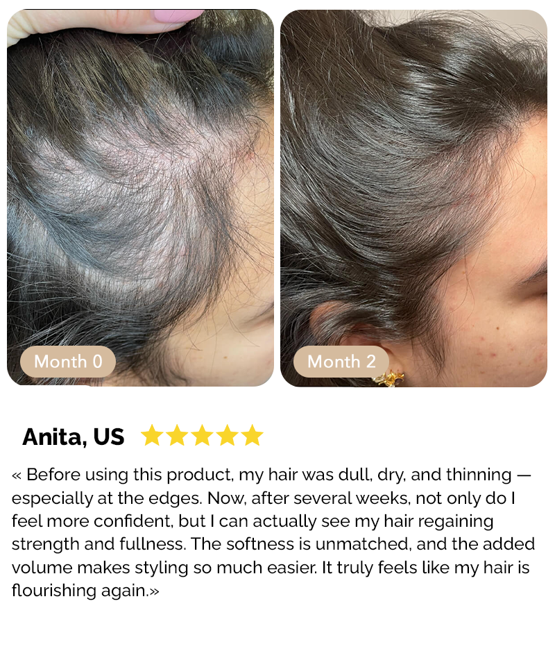 Viele Anwenderinnen bemerken innerhalb von 60 bis 90 Tagen das Nachwachsen neuer Haare und ein dichteres Haarwachstum , insbesondere am Haaransatz und am Oberkopf.