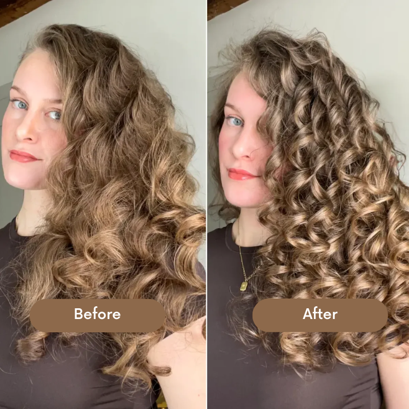 Die meisten Anwender bemerken den Unterschied schon nach der ersten Anwendung: Die Locken fühlen sich weicher an, sind definierter und lassen sich leichter stylen. Frizz wird reduziert und das Haar wirkt sofort gepflegter.
