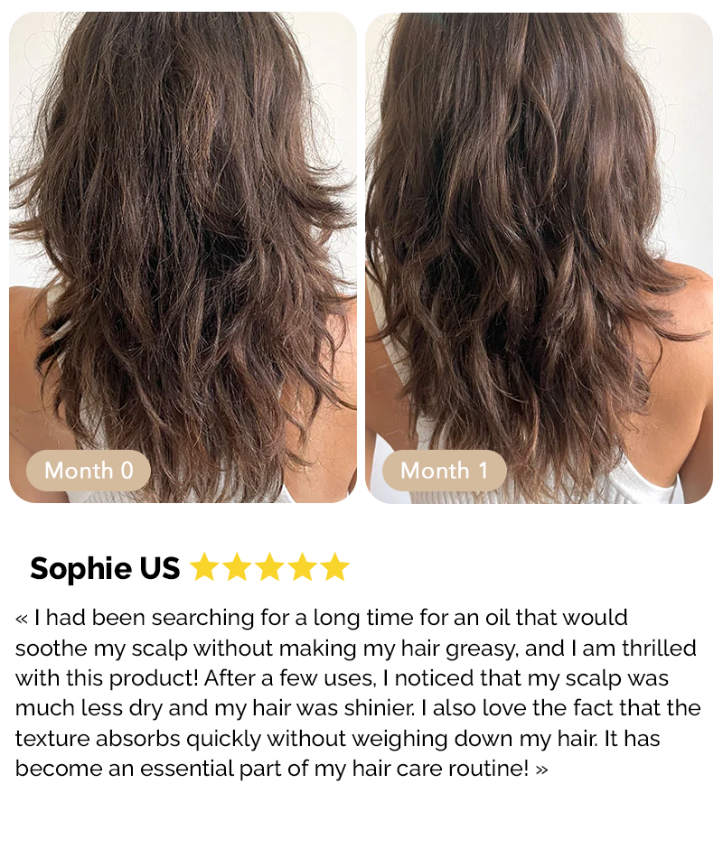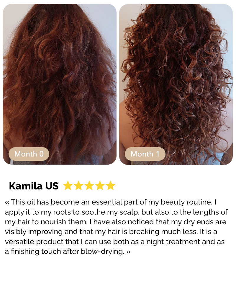 Ringelblumensamenöl : Regeneriert und beruhigt die Kopfhaut, spendet intensive Feuchtigkeit.